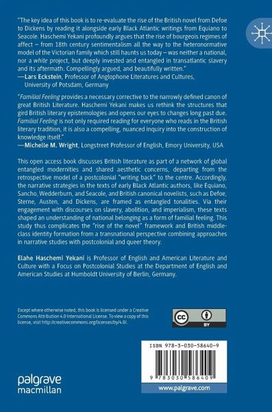 This open access book discusses British literature as part of a network of global entangled modernities and shared aesthetic concerns, departing from the retrospective model of a postcolonial "writing back" to the centre. Accordingly, the narrative strategies in the texts of early Black Atlantic authors, like Equiano, Sancho, Wedderburn, and Seacole, and British canonical novelists, such as Defoe, Sterne, Austen, and Dickens, are framed as entangled tonalities. Via their engagement with discourses on slavery, abolition, and imperialism, these texts shaped an understanding of national belonging as a form of familial feeling. This study thus complicates the "rise of the novel" framework and British middle-class identity formation from a transnational perspective combining approaches in narrative studies with postcolonial and queer theory.