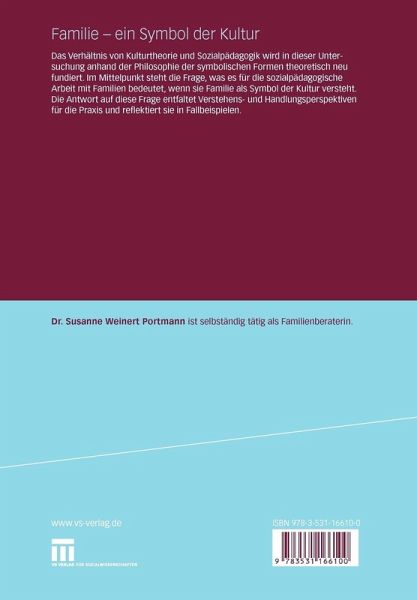 Die Arbeit Susanne Weinert Portmanns stellt ein Konzept von Familienhilfe im Horizont eines kulturtheoretischen Konzepts vor. Sie scheint mir unter zwei Aspekten interessant und weiterführend für die sozialpädagogische Diskussion: als Beitrag zu einer fälligen neuen Diskussion zum Verhältnis von Kultur, Kulturtheorie und Sozialpädagogik und - in der Konkretisierung - zu neuen Profilierungen einer sozialpädagogischen Familienhilfe. Die Beziehung der Sozialpädagogik zur Kultur ist gegenwärtig nicht sehr ausgeprägt; Sozialpädagogik ist fokussiert auf soziale Probleme und belastete Interaktionen und K- munikationen. Gegen diese Engführung gibt es in der Sozialpädagogik Gegendiskurse, die sich in der Argumentation für einen erweiterten, allgemeinen Kulturbegriff mit den Disk- sen der neueren Sozial- und Kulturwissenschaften treffen. - ein solcher Ansatz aber ist bisher nur in den traditionell der Kultur (und Bildung) nahe stehenden Bereichen der K- turarbeit, der Jugendkulturarbeit, der Jugendarbeit und des Kindergartens von Bedeutung. Susanne Weinert Portmann erweitert diesen Diskurs und bezieht sich in ihrer Arbeit auf die für die Sozialpädagogik zentrale Aufgabe der Unterstützung von Familien in der Familienhilfe. Sie untersucht, was es für das Verständnis von Familie und das Konzept einer Familienhilfe bedeutet, wenn Familie im Kontext der Kulturtheorie als Symbol der Kultur verstanden wird. Für dieses Vorhaben greift Susanne Weinert Portmann auf Cassirers Theorie der s- bolischen Formen zurück und entwickelt im Horizont der hier gegebenen allgemeinen - stimmungen ein Konzept von Familie als symbolischer Form, aus dem sie Konsequenzen für eine kulturtheoretisch begründete Familienarbeit ableitet. Ihr Konzept konkretisiert sie in vielfältigenBelegen aus der Praxis.