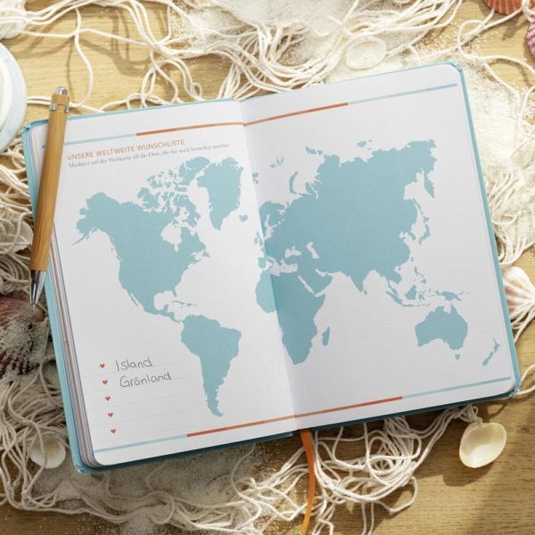 Mit Steckbriefen für alle Familienmitglieder, Weltkarte zum Planen und Markieren der Urlaubsdestination, Packlisten und Platz für Adressen, Fotos und persönliche NotizenFür jeden Urlaubstag eine Doppelseite mit Platz für Erinnerungen, Fotos oder zum Einkleben von ErinnerungsstückenRobuste Einstecktasche zum Sammeln von Andenken, wie z.B. Tickets, und praktischem Gummiband zum VerschließenAuszufüllen von jedem Familienmitglied, das gerne etwas eintragen möchte oder auch nur von einer einzelnen Person