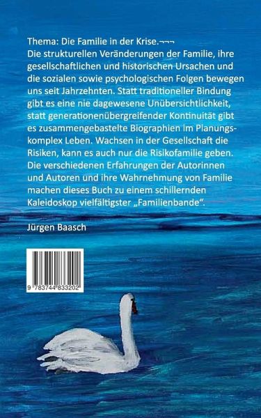 Thema - Die Familie in der Krise.Die strukturellen Veränderungen der Familie, ihre gesellschaftlichen und historischen Ursachen und die sozialen sowie psychologischen Folgen bewegen uns seit Jahrzehnten. Statt traditioneller Bindung gibt es eine nie dagewesene Unübersichtlichkeit, statt generationenübergreifender Kontinuität gibt es zusammengebastelte Biographien im Planungskomplex Leben. Wachsen in der Gesellschaft die Risiken, kann es auch nur die Risikofamilie geben. Die verschiedenen Erfahrungen der Autorinnen und Autoren und ihre Wahrnehmung von Familie machen dieses Buch zu einem schillernden Kaleidoskop vielfältigster Familienbande.