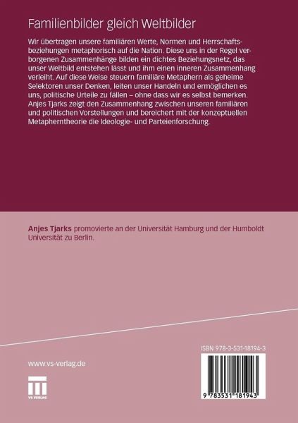 Wir übertragen unsere familiären Werte, Normen und Herrschaftsbeziehungen metaphorisch auf die Nation. Diese uns in der Regel verborgenen Zusammenhänge bilden ein dichtes Beziehungsnetz, das unser Weltbild entstehen lässt und ihm einen inneren Zusammenhang verleiht. Auf diese Weise steuern familiäre Metaphern als geheime Selektoren unser Denken, leiten unser Handeln und ermöglichen es uns, politische Urteile zu fällen - ohne dass wir es selbst bemerken. Anjes Tjarks zeigt den Zusammenhang zwischen unseren familiären und politischen Vorstellungen und bereichert mit der konzeptuellen Metapherntheorie die Ideologie- und Parteienforschung.