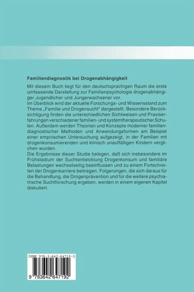 1. Einführung.- 2. Forschungsstand.- 2.1 Familien mit einem Drogenabhängigen aus Sicht der psychodynamics familientherapeutischen Schulen.- 2.2 Familien mit einem Drogenabhängigen aus Sicht der strukturell-familientherapeutischen Schulen.- 2.3 Familien mit einem Drogenabhängigen aus Sicht der systemisch- und strategisch-familientherapeutischen Schulen.- 2.4 Theorie der VCo-Abhängigkeit .- 2.5 Empirische Untersuchungen über den Zusammenhang zwischen Drogenkonsum im Jugend- und Jungerwachsenenalter und familiärer Dysfunktionalität.- 3. Zielsetzungen und Fragestellungen der Untersuchung.- 3.1 Untersuchungsziele.- 3.2 Fragestellungen und Hypothesen.- 4. Methodik und Untersuchungsdurchführung.- 4.1 Familienforschung.- 4.2 Untersuchungsplan.- 4.2.1 Selektionskriterien.- 4.2.2 Medizinische Diagnostik.- 4.2.3 Untersuchungsablauf.- 4.2.4 Instrumente.- 4.2.4.1 Selbsteinschätzungsverfahren.- 4.2.4.2 Fremdeinschätzungsverfahren.- 4.3 Auswertung und statistische Verfahren.- 4.4 Überlegungen zur Reliabilität und Validität der Untersuchung.- 4.5 Ethische und rechtliche Fragen.- 5. Stichprobenbeschreibung.- 5.1 Zusammensetzung der Stichprobe.- 5.2 Beschreibung der Stichprobe.- 5.2.1 Patienten und Jungerwachsene.- 5.2.2 Mütter.- 5.2.3 Väter.- 5.2.4 Geschwister.- 5.3 Zusammenfassung und Beurteilung der Repräsentativität.- 6. Ergebnisdarstellung.- 6.1 Selbstbeschreibung.- 6.1.1 Ergebnisse aus dem Freiburger Persönlichkeitsinventar (FPI).- 6.1.1.1 Darstellung der Untersuchungsbefunde.- 6.1.1.2 Diskussion der Untersuchungsbefunde.- 6.1.2 Ergebnisse aus dem Familieneinschätzungsbogen (FAM III).- 6.1.2.1 Darstellung der Untersuchungsbefunde.- 6.1.2.2 Diskussion der Untersuchungsbefunde.- 6.2 Fremdbeschreibung.- 6.2.1 Ergebnisse aus dem Patterns of Individual Change Scales (PICS).- 6.2.1.1 Darstellung der Untersuchungsbefunde.- 6.2.1.2 Diskussion der Untersuchungsbefunde.- 6.2.2 Ergebnisse aus dem Psychischen und Sozialkommunikativen Befund (PSKB).- 6.2.2.1 Darstellung der Untersuchungsbefunde.- 6.2.2.2 Diskussion der Untersuchungsbefunde.- 6.2.3 Ergebnisse aus der Global Assessment Scale (GAS).- 7. Zusammenfassung und Diskussion.- 8. Schlußfolgerungen.