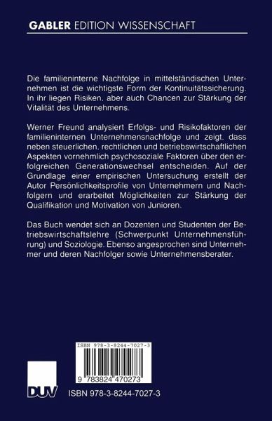 Die Arbeit von Werner Freund widmet sich einem wichtigen Thema, der familienin ternen Unternehmensnachfolge. Das Material, das im Rahmen dieser Arbeit erhoben wurde, wie auch die Ergebnisse wurden im Rahmen eines Gutachtenauftrages des Ministeriums für Wirtschaft, Verkehr, Landwirtschaft und Weinbau des Landes Rheinland-Pfalz, den ich mit Herrn Werner Freund und Herrn Christian Koch durch geführt habe, dem Ministerium übermittelt. In dem genannten Gutachten sind wir zu einem insgesamt erfreulichen Ergebnis ge kommen: Das Problem der Unternehmensnachfolge ist in Rheinland-Pfalz nicht so groß. als daß es nicht ohne Gefahr für viele Arbeitsplätze in Rheinland-Pfalz gelöst werden könnte. Im Rahmen dieses Gesamtergebnisses zeigt Freund, daß die Nachfolgeprobleme zu etwa 60% familienintern geregelt werden können. Dabei gibt es allerdings Unterschiede. Die Chance, daß die Nachfolge in mittelständischen Unternehmen des Landes Rheinland-Pfalz familienintern geregelt werden kann. be trägt 64%, in Westdeutschland insgesamt liegt sie dagegen niedriger, und zwar bei 58%. Entsprechend niedrig liegt in Rheinland-Pfalz die Nachfolge durch leitende Mitarbeiter des Unternehmens, also die familienexterne Nachfolge in der besonderen Form der Übergabe an leitende Mitarbeiter. In Rheinland-Pfalz werden die Familien betriebe nur zu etwa 12% an bisherige Mitarbeiter des Unternehmens übergeben. In Westdeutschland liegt diese Quote doppelt so hoch. Die Arbeit von Werner Freund ist methodisch interessant, weil eine Vielfalt von Me thoden eingesetzt wird. Die Nachfolgeprobleme werden an 22 Fällen mit Hilfe der Fallmethode gründlich untersucht. Er hat aber auch mit der Fragebogentechnik ge arbeitet und insgesamt 191 Familienunternehmen und 32 Nicht-Familienunternehmen untersuchen können.
