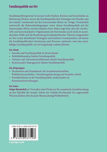 Familienpolitik gewinnt in immer mehr Städten, Kreisen und Gemeinden an Bedeutung. Ebenso setzen die familienpolitischen Strategien des Bundes und der Länder zunehmend auf der kommunalen Ebene an. Holger Wunderlich untersucht die Rahmenbedingungen, unter denen Familienpolitik auf der kommunalen Ebene zurzeit realisiert wird. Dabei zeigt sich, dass die strukturelle und kommunikative Organisation der Kommunen noch nicht in ausreichendem Maße auf die Bearbeitung familienpolitischer Themen ausgerichtet ist. Der Autor identifiziert Strategien und konkrete Ansatzpunkte, mit denen die familienpolitischen Strukturen und Prozesse optimiert und eine nachhaltige Familienpolitik vor Ort begünstigt werden können.