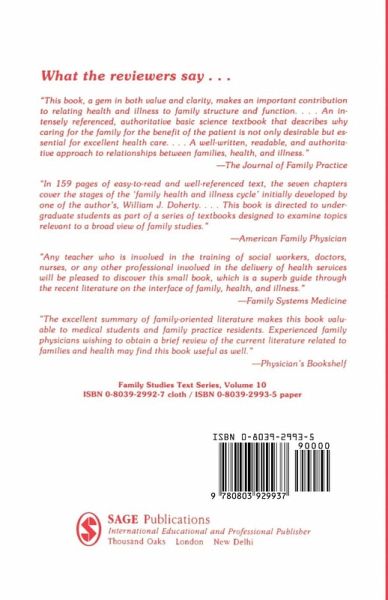 Families and Health is the first textbook to present an overview of the research on the relationship between families and health, placing an emphasis on common family patterns related to health and illness and interactions between families and the health care system. The volume includes discussions of family experiences with health promotion and risk reduction, vulnerability and illness onset, illness appraisal, acute response and adaptation to illness. Separate chapters address each of these situations in relation to such areas as cardiovascular disease, cancer, diabetes, and bereavement.
