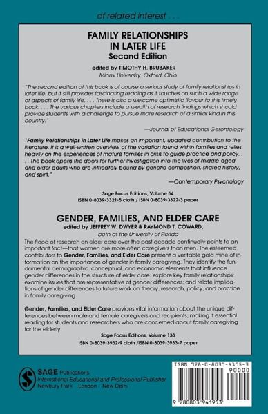 Foreword - Lillian E Troll Families and Retirement - Maximiliane Szinovacz, David J Ekerdt and Barbara H Vinick Conceptual and Methodological Issues PART ONE: DEMOGRAPHIC, HISTORICAL, AND POLICY ISSUES Men and Women in Their Retirement Years - Mark D Hayward and Mei-Chun Liu A Demographic Profile The `Family Fund - Brian Gratton and Frances M Rotondo Strategies for Security in Old Age in the Industrial Era Family Provisions in Old-Age Pensions - Regina O Grady-LeShane and John B Williamson Twenty Industrial Nations PART TWO: RETIREMENT TIMING: LIFE COURSE PERSPECTIVES Family Pathways to Retirement - Angela M O Rand, John C Henretta and Margaret L Krecker Family Responsibilities and Women s Retirement - Laurie Russell Hatch and Aaron Thompson Marital Status and Retirement Plans - Leslie A Morgan Do Widowhood and Divorce Make a Difference? PART THREE: MARITAL RELATIONSHIPS AND THE RETIREMENT EXPERIENCE Couples View Retirement Activities - Barbara H Vinick and David J Ekerdt Expectation vs Experience Retirement and Marital Satisfaction - Robert C Atchley Couples in Retirement - Lorraine T Dorfman Division of Household Work Conjugal Support Among Working-Wife and Retired-Wife Couples - Trudy B Anderson Equity in Older Families - Pat M Keith, Robbyn R Wacker and Robert B Schafer PART FOUR: RETIREMENT AND EXTENDED KIN RELATONSHIPS Family and Retirement in the Context of Elderly Migration - Lee Cuba The Context of Retired Women as Caregivers - Ellie Brubaker and Timothy H Brubaker Social Activities and Retirement Adaptation - Maximiliane Szinovacz Gender and Family Variations Families and Retirement - Maximiliane Szinovacz, David J Ekerdt and Barbara H Vinick Avenues for Research