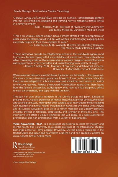When someone develops a mental illness, the impact on the family is often profound. The most common treatment processes, however, focus on the patient while the loved ones are relegated to subordinate roles and sometimes even viewed as barriers to effective recovery. Families Coping with Mental Illness approaches these issues from the family's perspective, studying how they react to initial diagnosis, adjust to new circumstances, and cope with the situation. Through her own original research in the United States and Japan, Kawanishi presents a cross-cultural experience of mental illness that examine both psychological and sociological issues, making this book suitable to all international fields engaging with diversity and mental health. Including first-hand accounts along with analysis and discussion, Kawanishi gives voice to family members and adeptly identifies universal themes of resilience, adaptability, and strength of the family unit. This innovative text offers a unique viewpoint that will appeal to a wide audience of professionals and non-professionals from a variety of backgrounds.