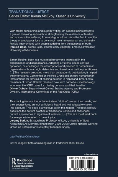 Families of the Missing interrogates the current practice of transitional justice from the viewpoint of the families of those disappeared and missing as a result of conflict and political violence. Studying the needs of families of the missing in two contexts, Nepal and Timor-Leste, the practice of transitional justice is seen to be rooted in discourses that are alien to predominantly poor and rural victims of violence, and that are driven by elites with agendas that diverge from those of the victims. In contrast to the legalist orientation of the global transitional justice project, victims do not see judicial process as a priority. Rather, they urgently seek an answer concerning the fate of the missing, and to retrieve human remains. As important are livelihood issues where families are struggling to cope with the loss of breadwinners and seek support to ensure economic security. Although rights are the product of a discourse that claims to be global and universal, needs are necessarily local and particular, the product of culture and context. And it is from this perspective that Families of the Missing seeks both to understand the limitations of transitional justice processes in addressing the priorities of victims, and to provide the basis of an emancipatory victim-centred approach to transitional justice.
