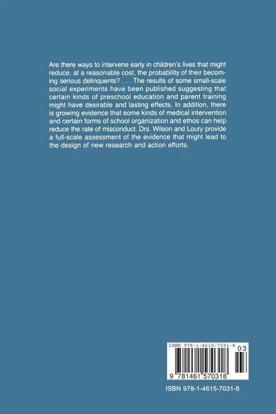 Are there ways to intervene early in a child's life that might reduce, at a reasonable cost, the probability of his becoming a serious delinquent? The results of some small-scale social experiments have been published suggesting that certain kinds of preschool education and parent training might have desirable and lasting effects. In addition, there is growing evidence that some kinds of medical intervention and certain forms of school organization and ethos could help reduce the rate of misconduct. The authors provide a full-scale assessment of the evidence that might lead to the design of new research and action efforts.…mehr