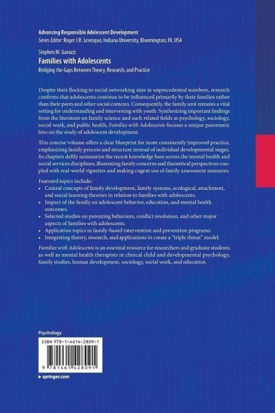 "Designed to guide students and professionals in using the "triple threat" of current theory, research, and preventions/interventions in professional practice and, this book is outstanding for inauguratingstudents into and updating practioners in the scholarship and programs for families with adolescents. This book moves beyond traditional approaches by integrating ideas from prominent theoretical foundations (family developmental, family systems, ecological, attachment, and social learning), highlighting research in the past 15 years on overall family systems and subsystems with adolescents (mother-youth, father-youth, mother-father-youth, siblings), families and adolescent outcomes, and providing both general guidelines and specific examples of family programs to serve as a foundation for prevention and intervention. In sum, this is an exciting resource that challenges readers to maximize the synergies of integrating contributions from theory, current research, and practice in prevention, intervention, and scholarship to promote adaptation in families with adolescents."