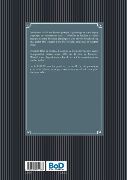 Depuis près de 40 ans, l'auteur pratique la généalogie et a mis depuis longtemps ses compétences dans la recherche et l'analyse de textes anciens au service des autres généalogistes. Son secteur de recherche se situe plutôt dans la région Nord Pas-de-Calais mais aussi en Périgord Ouest.