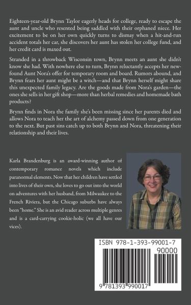 Eighteen-year-old Brynn Taylor eagerly heads for college, ready to escape the aunt and uncle who resented being saddled with their orphaned niece. Her excitement to be on her own quickly turns to dismay when a hit-and-run accident totals her car, she discovers her aunt has stolen her college fund, and her credit card is maxed out. Stranded in a throwback Wisconsin town, Brynn meets an aunt she didn't know she had. With nowhere else to turn, Brynn reluctantly accepts her new-found Aunt Nora's offer for temporary room and board. Rumors abound, and Brynn fears her aunt might be a witch-and that Brynn herself might share this unexpected family legacy. Are the goods made from Nora's garden-the ones she sells in her gift shop-more than herbal remedies and homemade bath products? Brynn finds in Nora the family she's been missing since her parents died and allows Nora to teach her the art of alchemy passed down from one generation to the next. But past sins catch up to both Brynn and Nora, threatening their relationship and their lives.