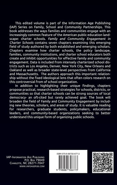 This edited volume is part of the Information Age Publishing (IAP) Series on Family, School and Community Partnerships. This book addresses the ways families and communities engage with an increasingly common feature of the American public education landscape: charter schools. Family and Community Engagement in Charter Schools contains seven chapters examining this emerging field of study authored by both established and emerging scholars. Chapters examine how charter schools, the policy landscape, families, community institutions, and charter school educators both create and inhibit opportunities for effective family and community engagement. Data is included from intensely charterized school districts such as Los Angeles, Denver, New York City, New Orleans and Oakland as well as broader state-level perspectives from California and Massachusetts. The authors approach this important relationship without the fixed ideological lens that often colors research on this controversial from of school organization. In addition to highlighting their unique findings, chapters propose practical, research-based strategies for schools, districts, or communities so that charter schools can be strong sources of local democracy- an oft-cited but rarely achieved goal. The book will broaden the field of Family and Community Engagement by including new theories, scholars, and areas of study. It is valuable reading for researchers, graduate students, policymakers, educational leaders, and community-based organizations seeking to better understand this unique form of organizing public schools.