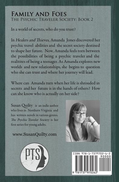 Amanda Jones' story continues with Family and Foes, the second book in The Psychic Traveler Society series. Six months into her PTS training, Amanda feels torn between becoming a psychic traveler and living as a "normal" teenager. As she explores new worlds and new relationships, Amanda questions who she can trust and where her journey will lead. What is Amanda's place in this secret society? Can she take control of her future when she's the only teenager in a world of adults?