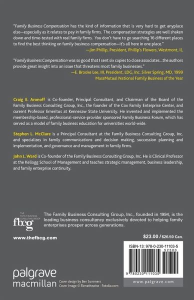 'Family Business Compensation has the kind of information that is very hard to get anyplace else - especially as it relates to pay in family firms. It is very focused on the pay issues that matter to business owning families, and it is written by people who have earned their stripes consulting with family owned businesses. The compensation strategies are well shaken down and time-tested with real family firms. You don't have to go searching 16 different places to find the best thinking on family business compensation - it's alll here in one place.' - Jim Phillip, President, Phillip's Flowers, Westmont, IL