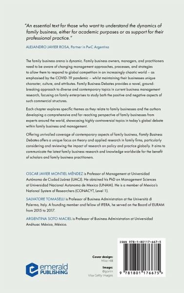 Family Business Debates provides a novel, ground-breaking approach to diverse and contemporary topics in current business management research, focusing on family enterprises to study both the positive and negative aspects of such commercial structures.