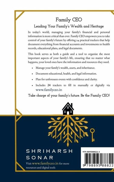 When the author's spouse was diagnosed with a rare form of cancer, it shattered his comfort and sparked deep reflections on life's uncertainties. He realized that having money alone is insufficient; without proper arrangements for accessing it during crises, families can be left vulnerable. While not the essence of life, money serves as the lubricant that keeps the family engine running smoothly. This experience inspired the creation of Family CEO, a platform designed to help families prepare for the unexpected. Whether facing the sudden loss of a parent or ensuring proper care for a special needs family member, finding critical financial, medical, and legal information amid emotional turmoil can be challenging. Family CEO serves as a practical guide, helping families manage their wealth and ensure continuity and security. Covering sensitive topics like emergency funds, health insurance, and funeral arrangements, the book introduces 24 essential trackers for financial portfolios, health records, children's education, and more. Documenting these areas reduces stress and confusion, making vital information readily accessible when needed. Accompanying the book is the website www.familyceo.in, offering a secure digital solution for families to store and update information. With interactive tabs for each tracker, users can manage their details. The Family Tree (Vanshavali) feature also encourages recording lineage, allowing future generations to preserve their family's history.