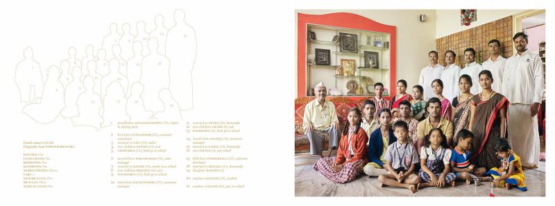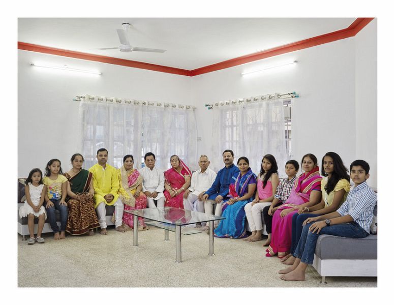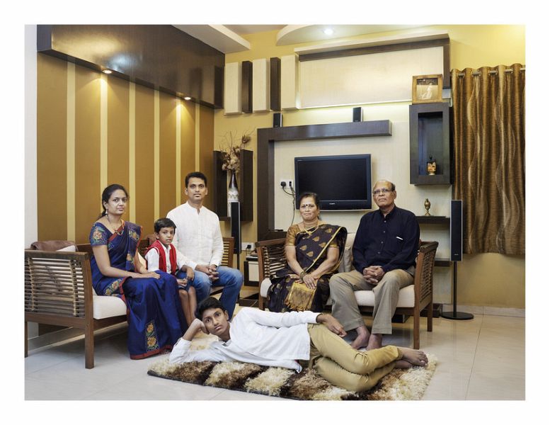 Großfamilienportraits in Bangalore, Indien. In Indien ist die Großfamilie (joint family) eine heilige Institution, die tief im hinduistischen Gedankengut verankert ist. In einer traditionellen, indischen Großfamilie leben drei oder mehr Generationen unter einem Dach und alle teilen sich eine Küche, manchmal sogar ein Bankkonto. In der Regel bleiben die Söhne mit ihren Familien bei den Eltern wohnen, so dass schnell über 20 Personen in einem Haus zusammen leben. Da sich auch in Indien die moderne Gesellschaft immer rasanter entwickelt, wird es schwieriger, diese Form des Zusammenlebens vor…mehr