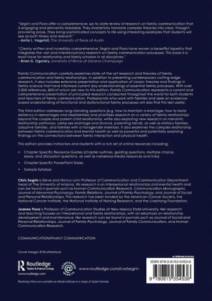 "Clearly written and incredibly comprehensive. Segrin and Flora have woven a beautiful tapestry that integrates the vast and interdisciplinary research on family communication processes. This book is a must-have for relationship and family scholars in all disciplines."-Brian G. Ogolsky, University of Illinois at Urbana-Champaign