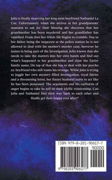Julia is finally marrying her long term boyfriend Nathaniel La Caz. Unfortunately when she arrives at her grandparents' mansion to ask for their blessing she discovers that her grandmother has been murdered and her grandfather has vanished. From then her whole life begins to crumble. Due to her father being the inspector at the police station he is not allowed to deal with his mother's murder case, however he insists in being part of the investigation. Julia knows that she needs to take the matters into her own hands and find out what's happened to her grandmother and clear the Taylor family name. On top of that she has to deal with her psycho ex-boyfriend who still wants his revenge. While Julia is trying to juggle her own mystery-filled investigation, royal fairies and a threatening letter, her future husband starts to act like he has been possessed. The arguments and his outbursts of anger begins to take its toll on their idyllic relationship. Can Julia and Nathaniel find their way back to each other and finally get their happy ever after?