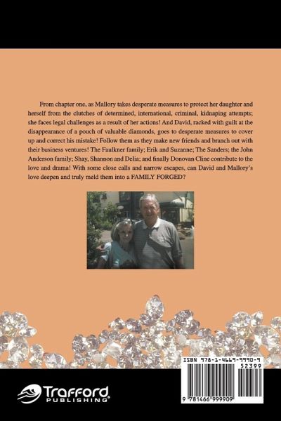 With new perils and pitfalls, David and Mallory, attack life and business with energy and zest. In spite of love and commitment, they find it sometimes hard to communicate and agree in some important areas. This amidst business crises and the demands of a growing family! From chapter 1, as Mallory takes desperate measures to protect her daughter and herself from the clutches of a determined international criminal's kidnapping attempts, she faces legal challenges as a result of her actions. And David, racked with guilt at the disappearance of a pouch of valuable diamonds, goes to desperate measures to cover up and correct his mistake. Follow them as they make new friends and branch out with their business ventures. The Faulkner family, Erik and Suzanne; the Sanders; the John Anderson family, Shay, Shannon, and Delia; and finally, Donovan Cline contribute to the love and drama. With some close calls and narrow escapes, can David and Mallory's love deepen and truly meld them into a family forged?