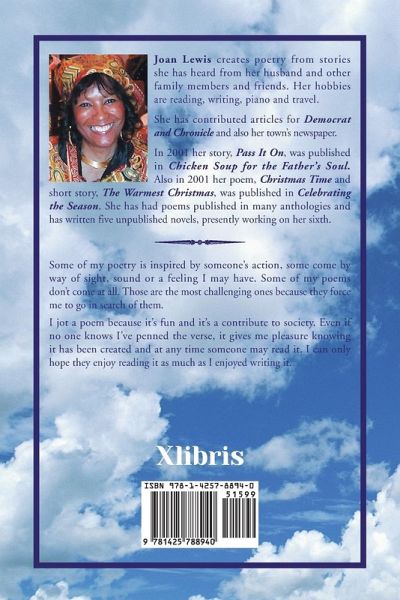 Joan Lewis is an avid reader and writer. The Inn at Walnut Valley is her first self-published novel. In 2001, Joan's short story, Pass It On was published in Chicken Soup for the Father's Soul, (Health Communications, Inc). Also in 2001, her short story, The Warmest Christmas was published in Celebrating The Season, (Essence Publishing). She has contributed two essays to staff writers for articles in her city's newspaper, Democrat and Chronicle. Joan has also had a by-line article printed in the city's Democrat and Chronicle as well. In the summer of 1996, Joan placed as semi-finalist in The International Society of Poets Competition, held in Washington, D.C. She has written over three-hundred poems. She credits her loving husband for his patience, support and love as she consistently wrote and edited this novel. He has been instrumental in encouraging her and providing the most updated equipment to aid the author in her writing. He has also supplied Joan with valuable research information. Joan would also like to give her sincere appreciation to all of her family and friends for their time, support and encouragement. Their enjoyment of her literary works greatly motivate her.