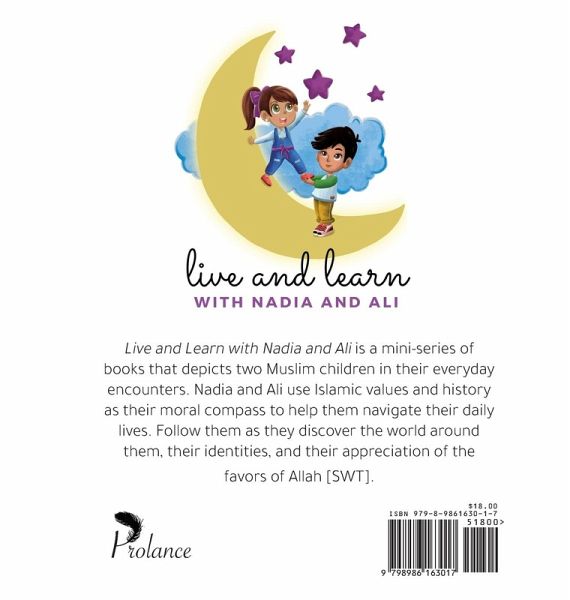 Live and Learn with Nadia and Ali¿ ¿is a mini-series of books that depicts two Muslim children in their everyday encounters¿. ¿ Nadia and Ali use Islamic values and history as their moral compass to help them navigate their daily lives¿. ¿Follow them as they¿ ¿discover the world around them¿, ¿their identities¿, ¿and their appreciation of the¿ ¿ favors of Allah¿ [¿SWT¿].¿