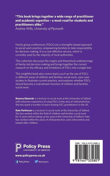 Deanna Edwards is a qualified social worker with extensive experience of using family group conferences. KateParkinson is a lecturer in social work at the University of Salford.