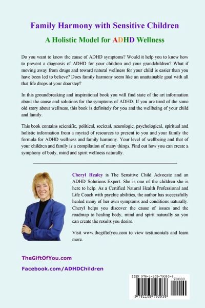 Do you want to know the cause of ADHD symptoms? Would it help you to know how to prevent a diagnosis of ADHD for your children and your grandchildren? What if moving away from drugs and toward natural wellness for your child is easier than you have been led to believe? Does family harmony seem like an unattainable goal with all that life drops at your doorstep? In this groundbreaking and inspirational book you will find scientific, political, societal, neurologic, psychological, spiritual and holistic information to give you and your family the formula for ADHD wellness and family harmony. Find out how you can create a symphony of body, mind and spirit wellness naturally. Visit www.thegiftofyou.com to learn more.