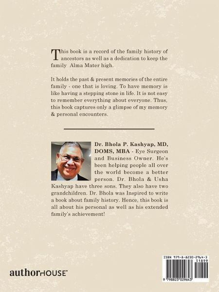 This book is a record of the family history of ancestors as well as a dedication to keep the family Alma Mater high. It holds the past & present memories of the entire family - one that is loving. To have memory is like having a stepping stone in life. It is not easy to remember everything about everyone. Thus, this book captures only a glimpse of my memory & personal encounters.