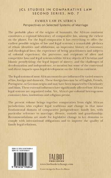 The probable place of the origins of humanity, the African continent constitutes a regional laboratory of comparative law, among the richest on the planet. For the legal comparatist it has everything to offer: the earliest possible origins of law and legal systems; a remarkable plethora of ethnic identities and affiliations; an impressive history of customary and theological laws; the experience of being practitioners and subjects of colonial experience; the purveyors and recipients of alien and competitive laws and legal systems within Africa; objects of Christian and Islamic proselytizing; the legal impact of slavery; and the challenges of decolonization and independence, to mention but some of the contextual and direct impacts upon legal development on the African continent. The legal systems of most African countries are influenced by varied sources of law, foreign and domestic. These foreign laws may be of English, French, Portuguese, or German origin and may have been impacted by Christianity and Islam. These external influences have significantly affected how African legal systems are organized today. Yet, Africa's pre-colonial heterogenous customary laws, institutions and religions persist. The present volume brings together comparatists from eight African jurisdictions who explore legal traditions and change in that most fundamental domain of comparative jurisprudence: family law, with particular reference to marriage and divorce. Recommendations are made for legislative change in key domains to comply with international obligations and to improve the quality of family legal relations. xiv, 567 pp.