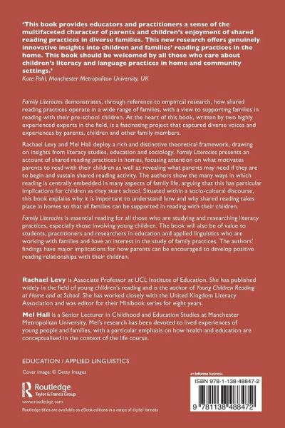 Family Literacies demonstrates, through reference to empirical research, how shared reading practices operate in a wide range of families, with a view to supporting families in reading with their pre-school children. At the heart of this book, written by two highly experienced experts in the field, is a fascinating project that captured diverse voices, and experiences by parents, children and other family members.¿ Rachael Levy and Mel Hall deploy a rich and distinctive theoretical framework, drawing on insights from literacy studies, education and sociology. Family Literacies presents an account of shared reading practices in homes, focusing attention on what motivates parents to read with their children as well as revealing what parents may need if they are to begin and sustain shared reading activity. The authors show the many ways in which reading is centrally embedded in many aspects of family life, arguing that this has particular implications for children as they start school. Situated within a socio-cultural discourse, this book explains why it is important to understand how and why shared reading takes place in homes so that all families can be supported in reading with their children. Family Literacies is essential reading for all those who are studying and researching literacy practices, especially those involving young children. The book will also be of value to students, practitioners and researchers in education and applied linguistics who are working with families and have an interest in the study of family practices. The authors' findings have major implications for how parents can be encouraged to develop positive reading relationships with their children.