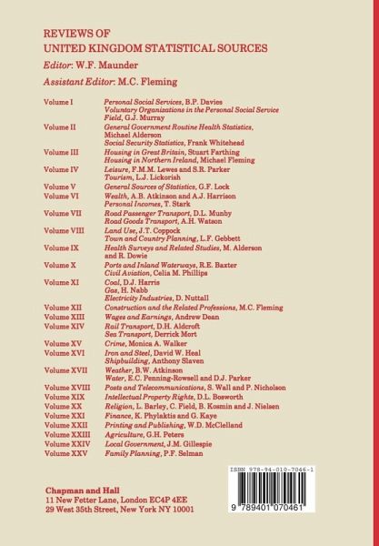The Sources and Nature of the Statistics of the United Kingdom, produced under th~ auspices of the Royal Statistical Society and edited by Maurice Kendall, filled a notable gap on the library shelves when it made its appearance in the early post-war years. Through a series of critical reviews by many of the foremost national experts, it constituted a valuable contemporary guide to statisticians working in many fields as well as a bench-mark to which historians of the development of Statistics in this country are likely to return again and again. The Social Science Research Council_ and the Society were both delighted when Professor Maunder came forward with the proposal that a revised version should be produced, indicating as well his willingness to take on the onerous task of editor. The two bodies were more than happy to act as co-sponsors of the project and to help in its planning through a joint steering committee. The result, we are confident, will be judged a worthy successor to the previous volumes by the very much larger 'statistics public' that has come into being in the intervening years. Mrs SUZANNE REEVE Mrs E. J. SNELL Secretary Honorary Secretary Economic and Social Research Council Royal Statistical Society _SSRC is now the Economic and Social Research Council (ESRC). vii MEMBERSHIP OF JOINT STEERING COMMITTEE (December 1986) Chairman: Miss S. V. Cunliffe Representing the Royal Statistical Society: Mr M. C. Fessey Dr S. Rosenbaum Mrs E. J.