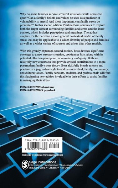Preface Acknowledgements 1. What Is New? 2. The Contextual Model: Understanding Family Stress in Science and Practice 3. Definitions: A Guide to Family Stress Theory 4. Coping, Adapting, Being Resilient...or Is It Managing? 5. Boundary Ambiguity: A Risk Factor in Family Stress Management 6. The Link Between Ambiguity and Ambivalence in Family Stress Management 7. Denial: Barrier if Buffer in Family Stress Management 8. Family Values and Belief Systems: Influences on Family Stress Management 9. The Family¿s External Context 10. Family Crisis: Overcoming Trauma and Victimization 11. Where Have We Been and Where Are We Going? Postscript References Index About the Author
