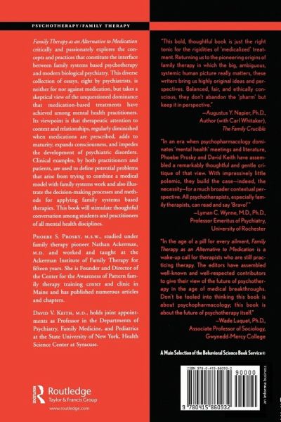 Family Therapy as an Alternative to Medication critically and passionately explores the concepts and practices that constitute the interface between family systems based psychotherapy and modern biological psychiatry. This diverse collection of essays, eight by psychiatrists, is neither for nor against medication, but takes a skeptical view of the unquestioned dominance that medication-based treatments have achieved among mental health practitioners. Its viewpoint is that therapeutic attention to context and relationships, regularly diminished when medications are prescribed, interferes with the development of psychiatric disorders, adds to maturity, and expands consciousness. Clinical examples, by both practitioners and patients, are used to define potential problems that arise from trying to combine a medical model with family systems work and also illustrate the decision-making processes and methods for applying family systems based therapies. This book will stimulate thoughtful conversation among students and practitioners of all mental health disciplines.