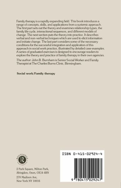 The first part sets out the theory and examines relationship types, the family life cycle, interactional sequences and different models of change. The next section puts the theory into practice. It describes verbal and non-verbal techniques which are used to elicit information and initiate change. The last part considers some of the necessary conditions for the successful integration and application of this approach in social work practice, illustrated by detailed case examples.