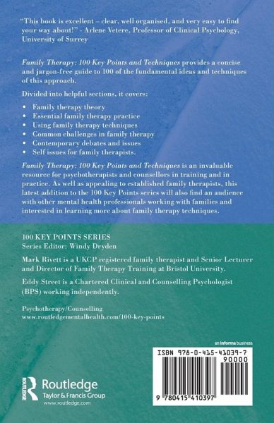 Family Therapy: 100 Key Points provides a concise and jargon-free guide to the fundamentals of this field.