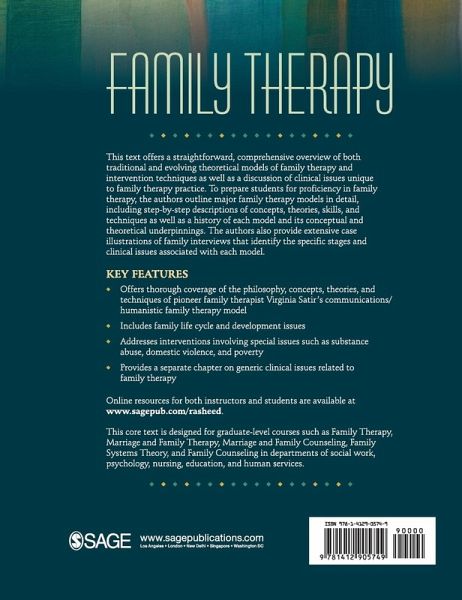 This text offers a straightforward, comprehensive overview of both traditional and evolving theoretical models of family therapy and intervention techniques as well as a discussion of clinical issues unique to family therapy practice. Aiming to prepare students to develop beginning proficiency in family therapy, the authors outline major family therapy models in detail, including a step by step description of concepts, theories, skills, and techniques as well as a history of each model and its conceptual and theoretical underpinnings. The text also provides extensive case illustrations of family interviews that identify the specific stages, clinical issues, concepts, theories and techniques associated with each model. This core text is designed for graduate level courses such as Family Therapy, Marriage and Family Therapy, Marriage and Family Counseling, Family Systems Theory, and Family Counseling in departments of social work, psychology, nursing, education, or human services.