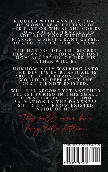 "This will never be a fairy tale, kitten." Riddled with anxiety that he won't be accepting of her past or where she comes from, Abigail travels to Adelaide Cove with her fiancé to meet Grant Geyer, her future father-in-law. She has no idea the secret her fiancé is hiding or just how accepting of her his father will be. Unknowingly walking into the devil's lair, Abigail is about to be thrust into a world of depravity she didn't know existed. Will she become yet another secret buried in this small town? Or will she find salvation in the darkness she didn't know existed inside of her? --- Also contains the series prequel Dark Devils as an extended prologue: Living in the quaint, small town of Adelaide cove, it was expected that Grant, Edmund, Elizabeth, William, and Samuel would befriend each other. What they didn't expect was their extreme wealth, questionable pasts and common interests drawing them closer together. No one knew how savagely depraved and carnal those desires truly were. One fateful night of sinful indulgences would seal their bond, releasing an evil in them even they didn't know was there.