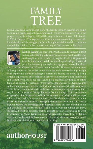 Family Tree is an inspirational story of a family through generations going back from a people's republic commonwealth country in southern Asia in the ganges river delta village in 1902 all the way to the current lives of the family in 2022 in England. The saga starts with a common man wanting a normal life for his family and the struggles he faces throughout his life and that continues through his children. It then shows how they all find success in their lives.