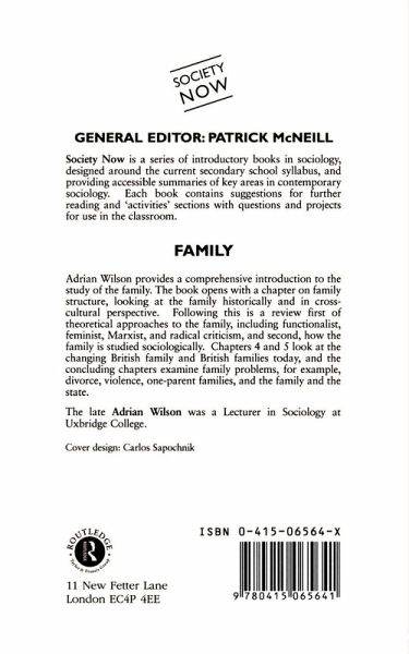 Adrian Wilson provides a comprehensive introduction to the study of the family. The book opens with a chapter on family structure, looking at the family historically and in cross-cultural perspective. Following this is a review first of theoretical approaches to the family, including functionalist, feminist, Marxist and radical criticism, and second, how the family is studied sociologically. Chapters 4 and 5 look at the changing British family and British families today, and the concluding chapters examine family problems, for example, divorce, violence, one -parent families, and the family and the state.