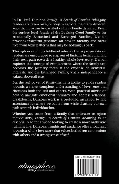 In Dr. Paul Dunion's Family: In Search of Genuine Belonging, readers are taken on a journey to explore the many different ways that love can be derailed within a family dynamic. From the surface-level facade of the Looking Good Family to the emotionally Enmeshed and Estranged Families, Dunion provides insightful guidance on how to identify and break free from toxic patterns that may be holding us back. Through examining childhood roles and family expectations, readers are encouraged to step out of limiting beliefs and find their own path towards a healthy, whole love story. Dunion explores the concept of Enmeshment, where the family unit becomes the primary focus at the expense of individual interests, and the Estranged Family, where independence is valued above all else. But the real power of Family lies in its ability to guide readers towards a more complete understanding of love, one that cherishes both the self and others. With practical advice on how to navigate emotional intimacy and address relational breakdowns, Dunion's work is a profound invitation to find acceptance for where we come from while charting our own path towards individuation. Whether you come from a family that embraces or rejects individuality, Family: In Search of Genuine Belonging is an essential read for anyone looking to create a more authentic, fulfilling life. Dunion's insights and guidance offer a roadmap towards a whole love story that values both deep connections with others and a strong sense of self.