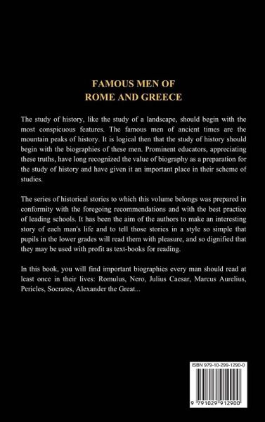 The study of history, like the study of a landscape, should begin with the most conspicuous features. The famous men of ancient times are the mountain peaks of history. It is logical then that the study of history should begin with the biographies of these men. Prominent educators, appreciating these truths, have long recognized the value of biography as a preparation for the study of history and have given it an important place in their scheme of studies. The series of historical stories to which this volume belongs was prepared in conformity with the foregoing recommendations and with the best practice of leading schools. It has been the aim of the authors to make an interesting story of each man's life and to tell those stories in a style so simple that pupils in the lower grades will read them with pleasure, and so dignified that they may be used with profit as text-books for reading. In this book, you will find important biographies every man should read at least once in their lives: Romulus, Nero, Julius Caesar, Marcus Aurelius, Pericles, Socrates, Alexander the Great... This Premium Edition comes with an Easy to Read Layout making reading comfortable.