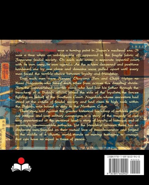 The Two Courts Period (1333-92) was a turning point in Japan's medieval era-a time when an unbridgeable rift appeared in the fragile fabric of Japanese feudal society. On each side stood a separate imperial court, each with its own army and its own agenda. As the schism deepened and the positions hardened, one by one clans and domains were rent asunder until each and every man faced the terrible choice between loyalty and friendship. Two such men were Nennami Okuyama Jion and Ch¿j¿ Hy¿go no Kami Nagahide, who faced each other from across the dazzling divide. Jion, an impoverished warrior monk who had lost his father through the treachery of a Bakufu official, joined the side of the loyalists, the forces fighting on behalf of the Southern Court. Nagahide, whose ancestors had stood at the cradle of feudal society and had risen to high rank within the Bakufu, was bound by duty to the Northern Court. Their stories, set against the greater historical backdrop of ruthless political intrigue and vast military campaigns, describe the tragedy of civil war experienced at the personal level; they tell of loyalty, of betrayal, and of seemingly insurmountable setbacks. Yet the friendship between these two so disparate men, founded on their mutual love of swordsmanship and forged in the midst of a chaotic world, stands as moving testimony to the kind of courage that can have no equal in times of peace.