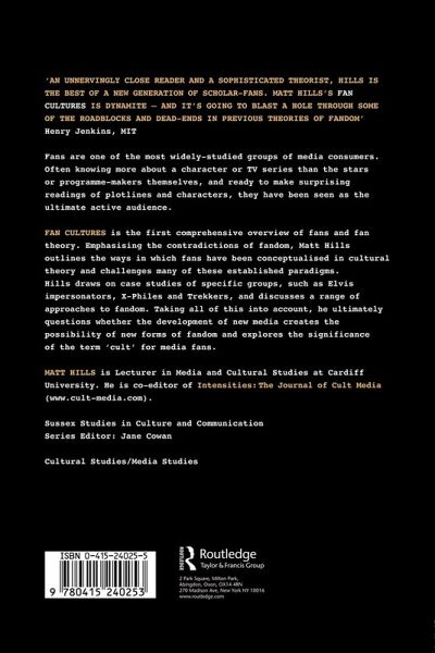 Emphasising the contradictions of fandom, Matt Hills outlines how media fans have been conceptualised in cultural theory. Drawing on case studies of specific fan groups, from Elvis impersonators to X-Philes and Trekkers, Hills discusses a range of approaches to fandom, from the Frankfurt School to psychoanalytic readings, and asks whether the development of new media creates the possibility of new forms of fandom. Fan Cultures also explores the notion of "fan cults" or followings, considering how media fans perform the distinctions of 'cult' status.