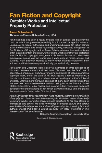 As long as there have been fans, there has been fan fiction. There seems to be a fundamental human need to tell additional stories about the characters after the book, series, play or movie is over. But developments in information technology and copyright law have put these fan stories at risk of collision with the content owners' intellectual property rights. Fan fiction has long been a nearly invisible form of outsider art, but over the past decade it has grown exponentially in volume and in legal importance. Because of its nature, authorship, and underground status, fan fiction stands at an intersection of key issues regarding property, sexuality, and gender. In Fan Fiction and Copyright, author Aaron Schwabach examines various types of fan-created content and asks whether and to what extent they are protected from liability for copyright infringement. Professor Schwabach discusses examples of original and fan works from a wide range of media, genres, and cultures. From Sherlock Holmes to Harry Potter, fictional characters, their authors, and their fans are sympathetically yet realistically assessed. Fan Fiction and Copyright looks closely at examples of three categories of disputes between authors and their fans: Disputes over the fans' use of copyrighted characters, disputes over online publication of fiction resembling copyright work, and in the case of J.K. Rowling and a fansite webmaster, a dispute over the compiling of a reference work detailing an author's fictional universe. Offering more thorough coverage of many such controversies than has ever been available elsewhere, and discussing fan works from the United States, Brazil, China, India, Russia, and elsewhere, Fan Fiction and Copyright advances the understanding of fan fiction as transformative use and points the way toward a safe harbor? for fan fiction.