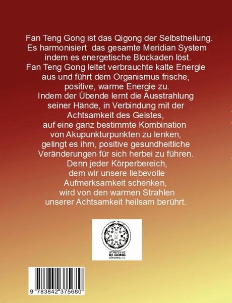Fan Teng Gong ist das Qigong der Selbstheilung. Es harmonisiert das gesamte Meridian-System indem es energetische Blockaden löst. Fan Teng Gong leitet verbrauchte kalte Energie aus und führt dem Organismus frische, positive, warme Energie zu. Indem der Übende lernt die Ausstrahlung seiner Hände, in der Verbindung mit der Achtsamkeit seines Geistes, auf eine ganz bestimmte Kombination von Akupunkturpunkten zu lenken, gelingt es ihm zunehmend besser, positive gesundheitliche Veränderungen für sich herbei zu führen.