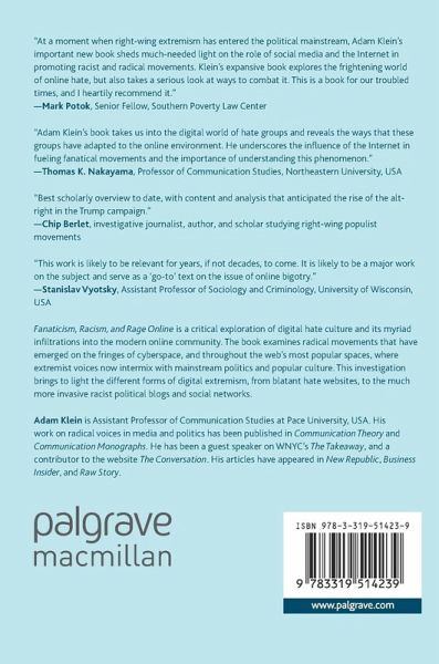 Fanaticism, Racism, and Rage Online is a critical exploration of digital hate culture and its myriad infiltrations into the modern online community. The book examines radical movements that have emerged both on the fringes of the Internet, as well as throughout the web's most popular spaces where extremist voices now intermix with mainstream politics and popular culture. This investigation brings to light the different forms of extremist culture on the web, from the blatant hate websites, to the much more invasive faux-social networks, racist political blogs, and pseudo-scientific domains.