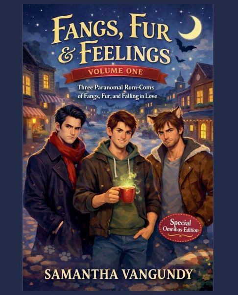 Fangs, Fur & Feelings: Volume One Three paranormal rom-coms. One strange little town. And a bonus story where the monsters make very bad decisions. Welcome to Moss Hollow-a town where vampires brood, werewolves patrol after dark, magic hums beneath the surface, and falling in love might be the most dangerous thing of all. This special omnibus edition brings together the first three stories in the beloved Fangs, Fur & Feelings series, plus an exclusive bonus novella packed with chaos, humor, and heart. Inside you'll find:Blood Type: Clueless A grumpy, ancient vampire who has given up on humanity-and the sunshine human who accidentally becomes his whole world. Hexed and Hungry A powerful witch who prefers solitude, a stubborn man who refuses to be scared off, and a connection neither of them planned. Howl at First Sight A guarded werewolf, a chance encounter, and the terrifying realization that love might be worth the risk. PLUS a bonus novella: Do Not Leave the Broody Men Unsupervised When three serious supernatural men get themselves captured by a magical collector, their partners are forced to work together to rescue them-proving once and for all that competence, kindness, and teamwork are far more dangerous than brute strength. Fangs, Fur & Feelings: Volume One is a cozy-chaotic collection of M/M paranormal romances filled with banter, found family, soft hearts behind sharp teeth, and happily-ever-afters worth fighting for. Perfect for readers who love:Paranormal rom-coms Grumpy/sunshine dynamics Found family Protective partners Humor with heart