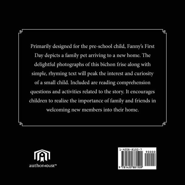 Primarily designed for the pre-school child, Fanny''s First Day depicts a family pet arriving to a new home. The delightful photographs of this bichon frise along with simple, rhyming text will peak the interest and curiosity of a small child. Included are reading comprehension questions and activities related to the story. It encourages children to realize the importance of family and friends in welcoming new members into their home.